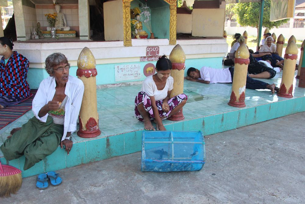 Shwesandaw pagoda is one of Myanmar’s biggest Buddhist pilgrimage sites where Gautama Buddha is alleged to have preached a sermon. The pagoda houses a Buddha’s hair. It is unique in having 2 umberellas (hti) at the top of the pagoda. Access is up a long flight of stairs or an elevator that goes up 6 floors. Excellent views over the town. Looking east you can see an enormous seated Bhudda figure rising up from the treeline, called Sehtatgyi Paya. Shwedaung, about 30 mins drive from Pyay, with its unique Buddha statue wearing gold plated glasses. It takes 9 monks to remove the sunglasses for cleaning every week. Next to the Buddha is a second pair of glasses. The sunglasses were added to the Buddha when a local nobleman decided to contribute his sunglasses in order to raise the belief of the locals through curiosity. The rumour that the Buddha could cure different diseases, especially eye disease was spread. The first pair of glasses was stolen and the second pair hidden inside the stature. A third pair was donated to the temple by a British officer whose wife had an eye disease. The woman was miraculously cured after the donation. |
