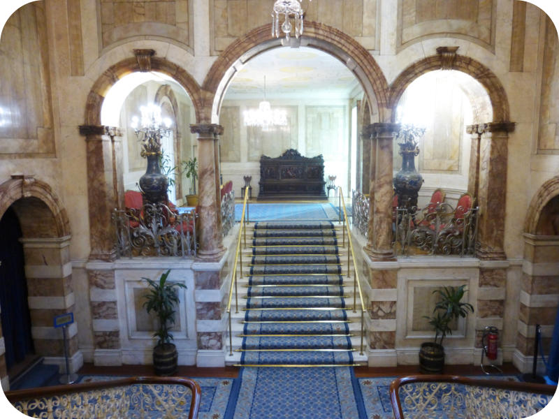 the building is hugely elaborate and decorative, with a staircase and