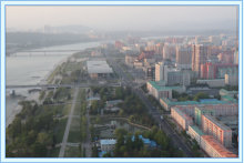 overlooking downtown Pyongyang. A bow and presentation of flowers is customary