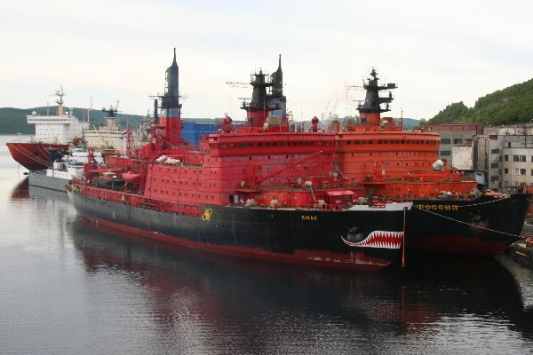 Our journey to the North Pole started with a flight from Helsinki, Finland, and then a tour of Murmansk including the museum before being taken to the Murmansk shipyard. The temperature was a most unusual 22 degrees (it normally averages 10 degrees at this time). We wilted in the coach whilst undergoing the scrutiny of our passports and documents to be allowed into the shipyard and onto our ship. Murmansk is home for the Russian fleet of ice-breakers, which are owned by the state but operated by the Murmansk Shipping Company. Click on an image to see a larger version