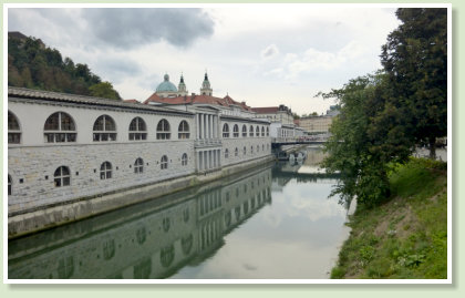 Flanking the river is Joze Plecnik’s magnificent colonnaded Central